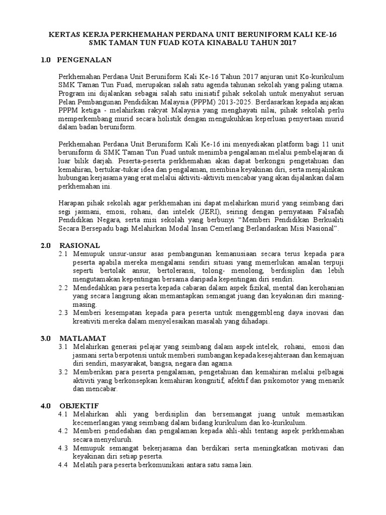 Kertas Kerja Perkhemahan Perdana Unit Beruniform 2017 Pdf