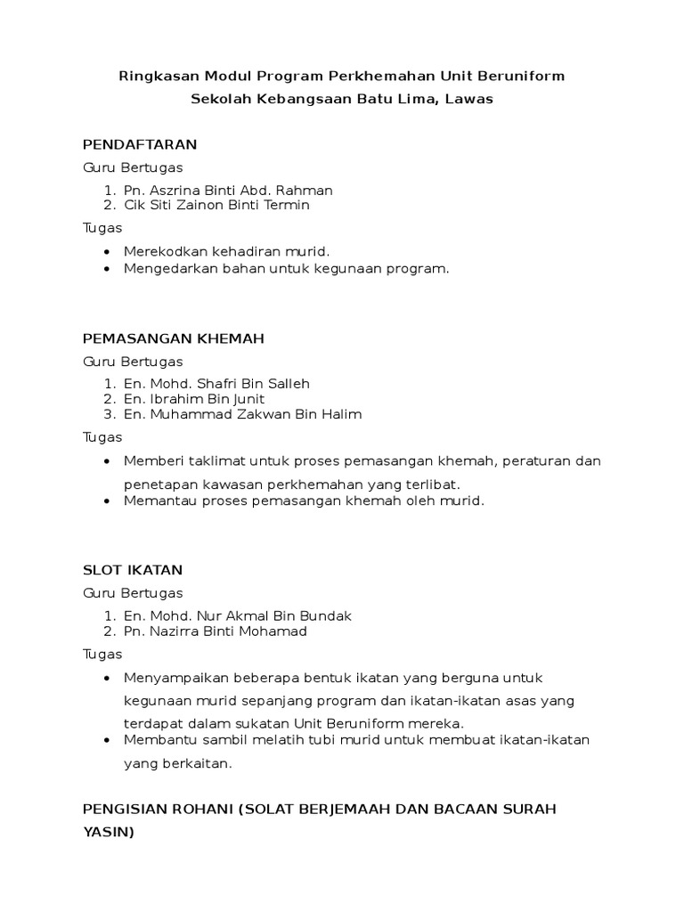 Menyediakan boring kebenaran ibu bapa bagi setiap. Azim aris koi orang temerloh contoh kertas kerja. Kertas kerja perkhemahan unit beruniform sekolah rendah.